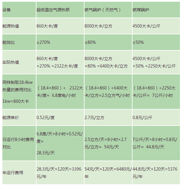供暖的動力是免費的空氣熱能,只需在吸收空氣熱能時消耗稍許的電力,而熱效率高達270%-430%,與傳統(tǒng)能源相比,不僅熱效率高,還避免了使用化工能源造成污染物排放,做到了節(jié)能環(huán)保雙重功效。